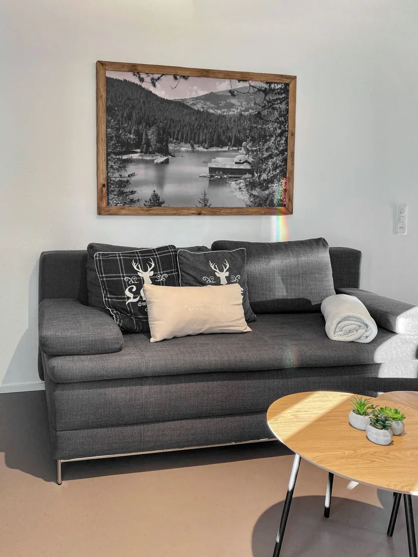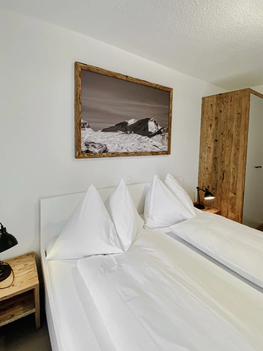 Diese ca. 65qm grosse Ferienwohnung verfügt über folgende Schlafmöglichkeiten. Ein Kinderzimmer in dem ein Kajüten Bett 90x200 und eine kleine Kommode stehen. Im Schlafzimmer befindet sich ein Doppelbett 160x200 und ein grosser Schrank. Im Wohnzimmer steht eine ausziehbare Schlafcouch. Ein Loewe TV sowie ein JBL Bluetooth Lautsprecher, dürfen nicht fehlen.